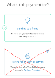 DO NOT CHOOSE ‘PAYING FOR AN ITEM OR SERVICE’. If you do, we will get charged a fee and it will be passed along to you.